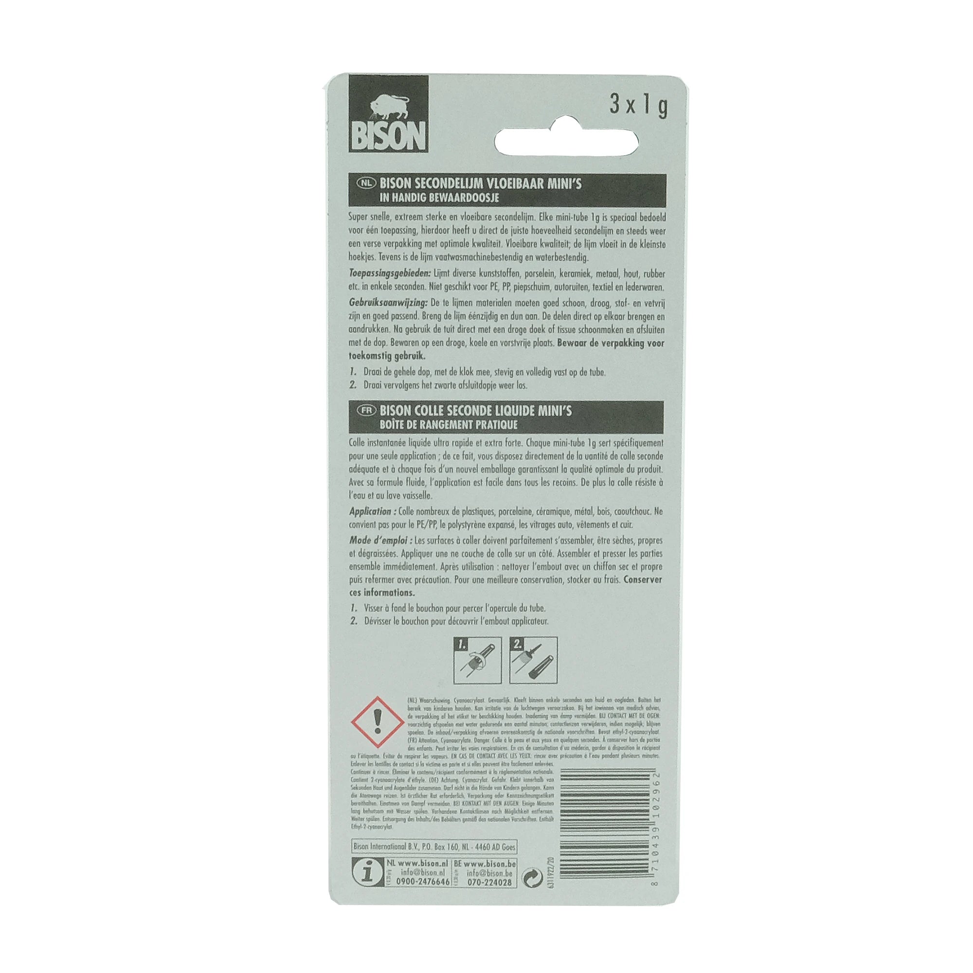 BISON - secondelijm mini's 3x 1g