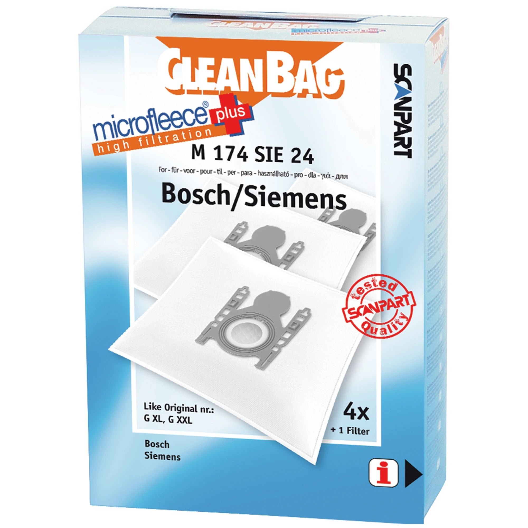 CLEANBAG M174SIE-24 4 Stofzuigerzakken 1 Microfilter - Geschikt voor Bosch | Siemens G All | G XL | G XXL