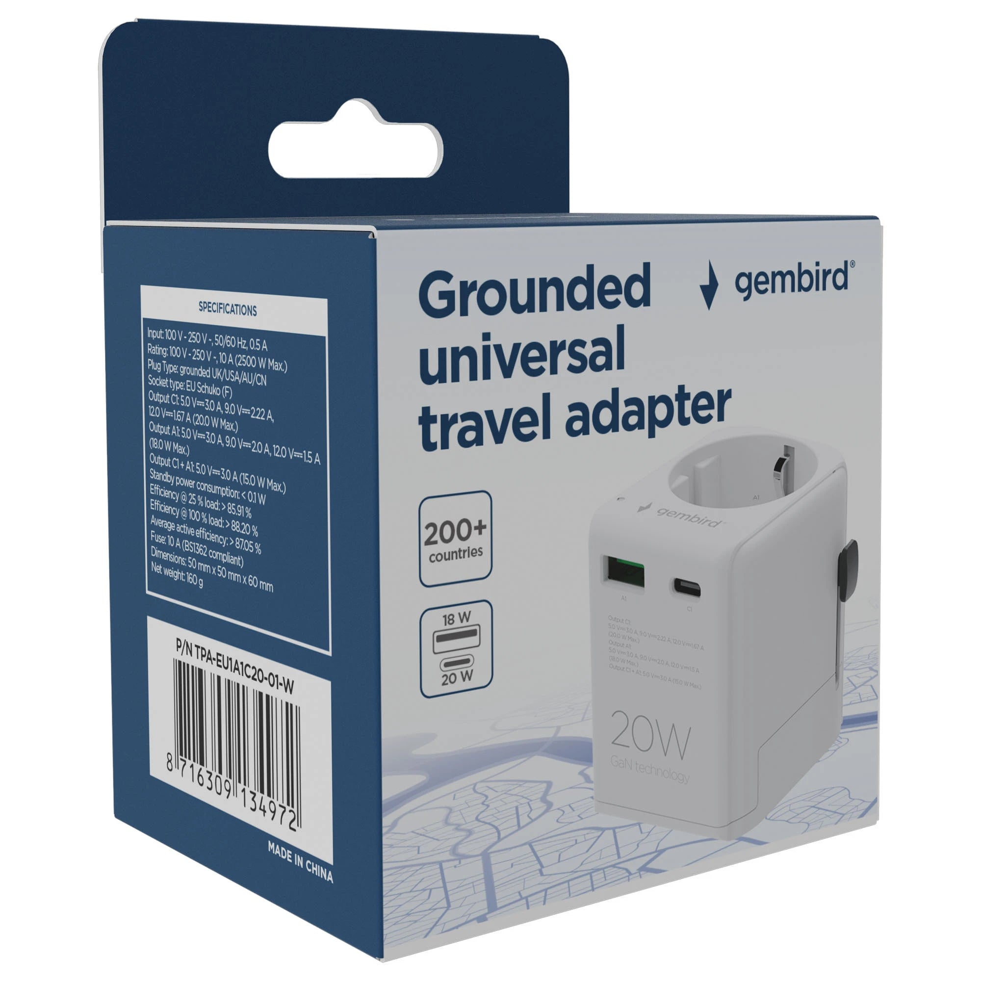 GEMBIRD - Reisstekker - Universeel - EU stopcontact - Wereld (200+ landen)