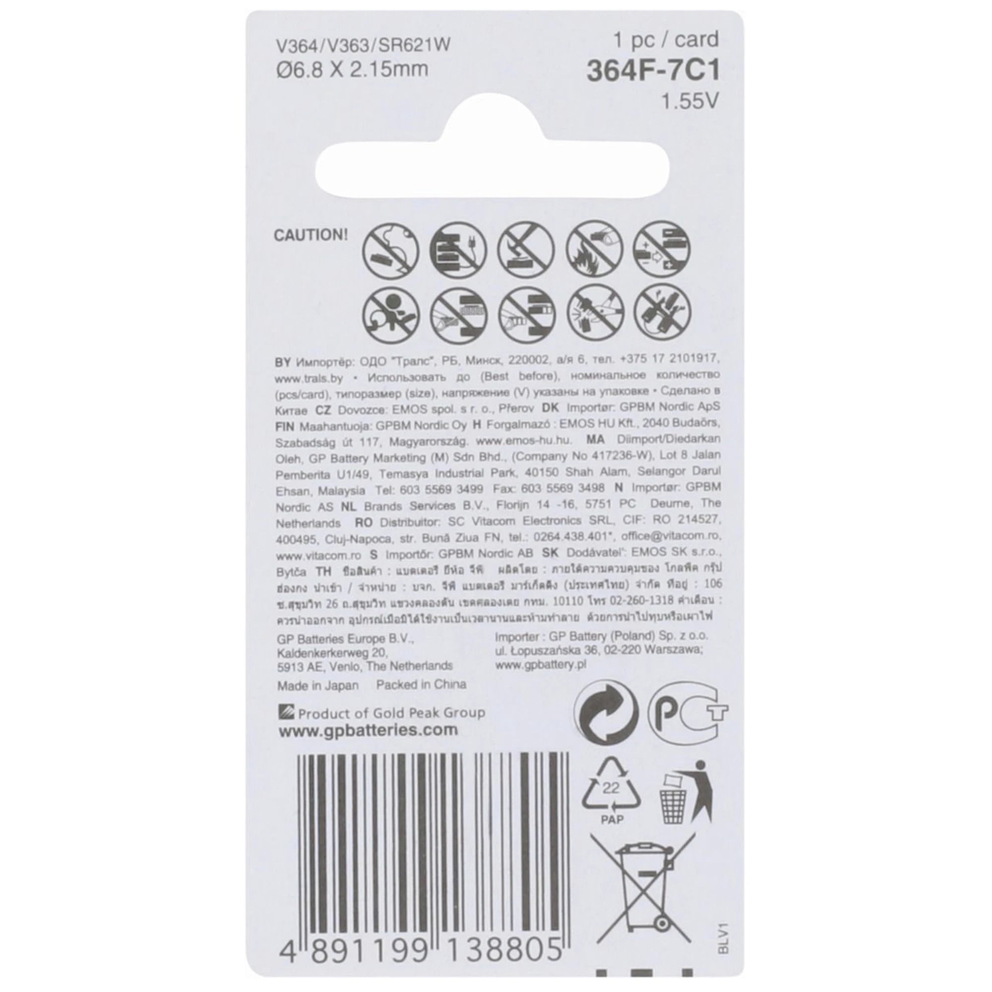 GP Silveroxide 364 | 363 | SR60 - 1.55 V - 17 mAh - Knoopcel