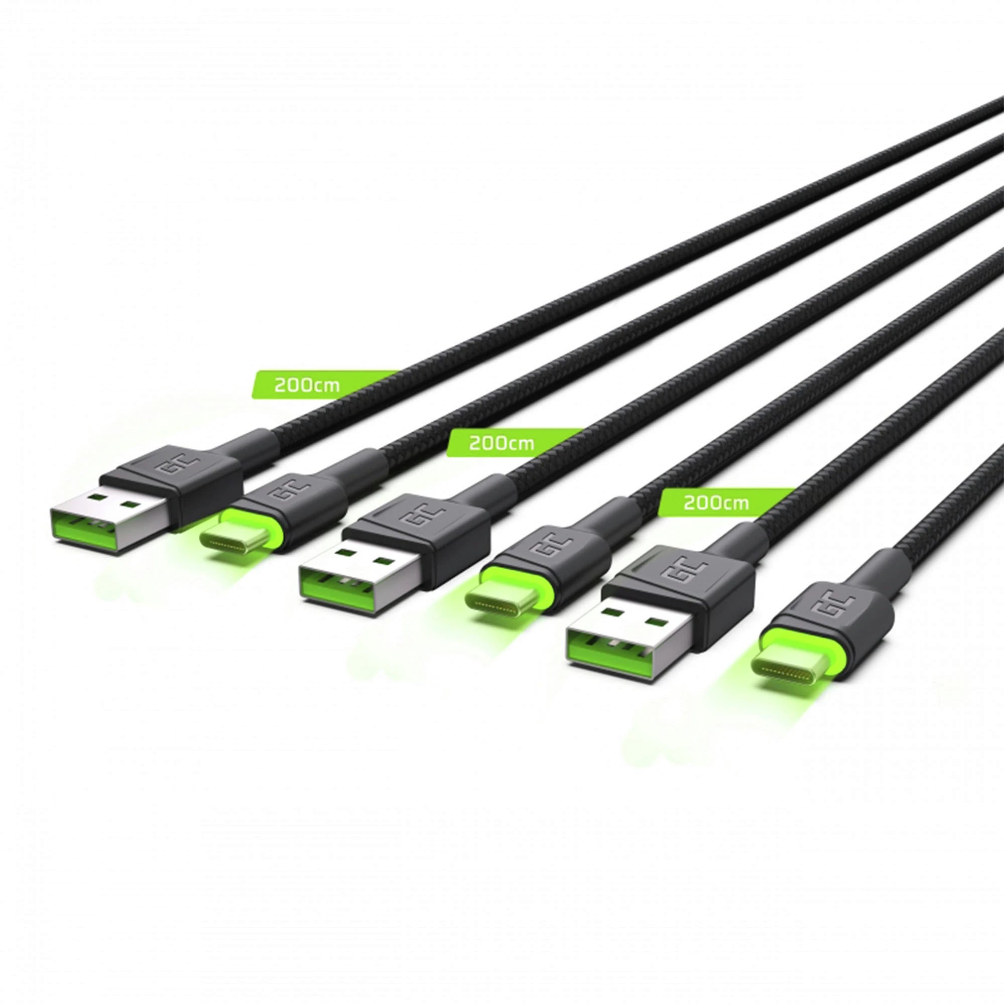 GREEN CELL - Laad- en datakabel - USB-A (Male) - USB-C (Male) - Set - 3 Stuks - 2 m