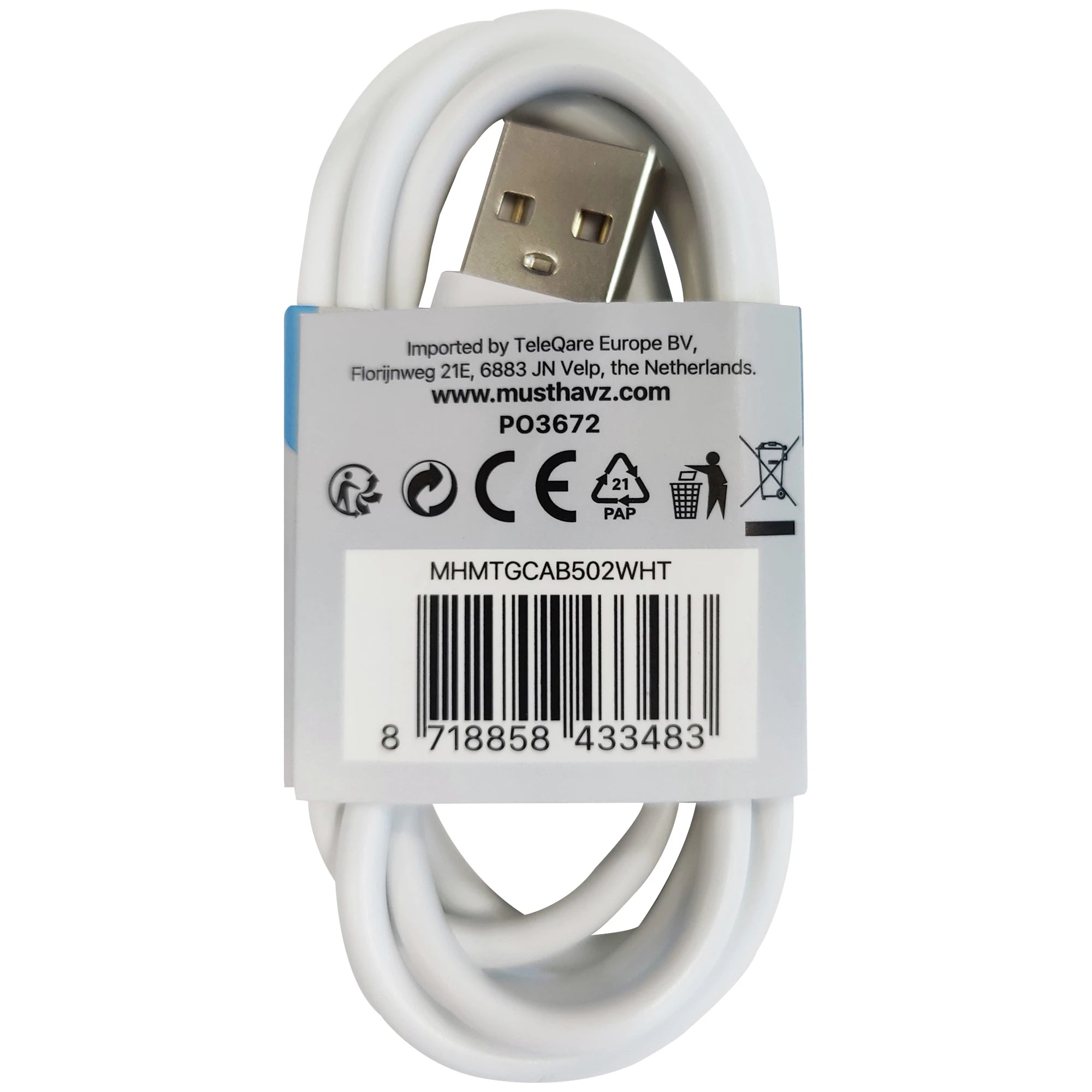 MUSTHAVZ - Laad- en datakabel - USB-A (Male) - USB-C (Male) - 1,0 m