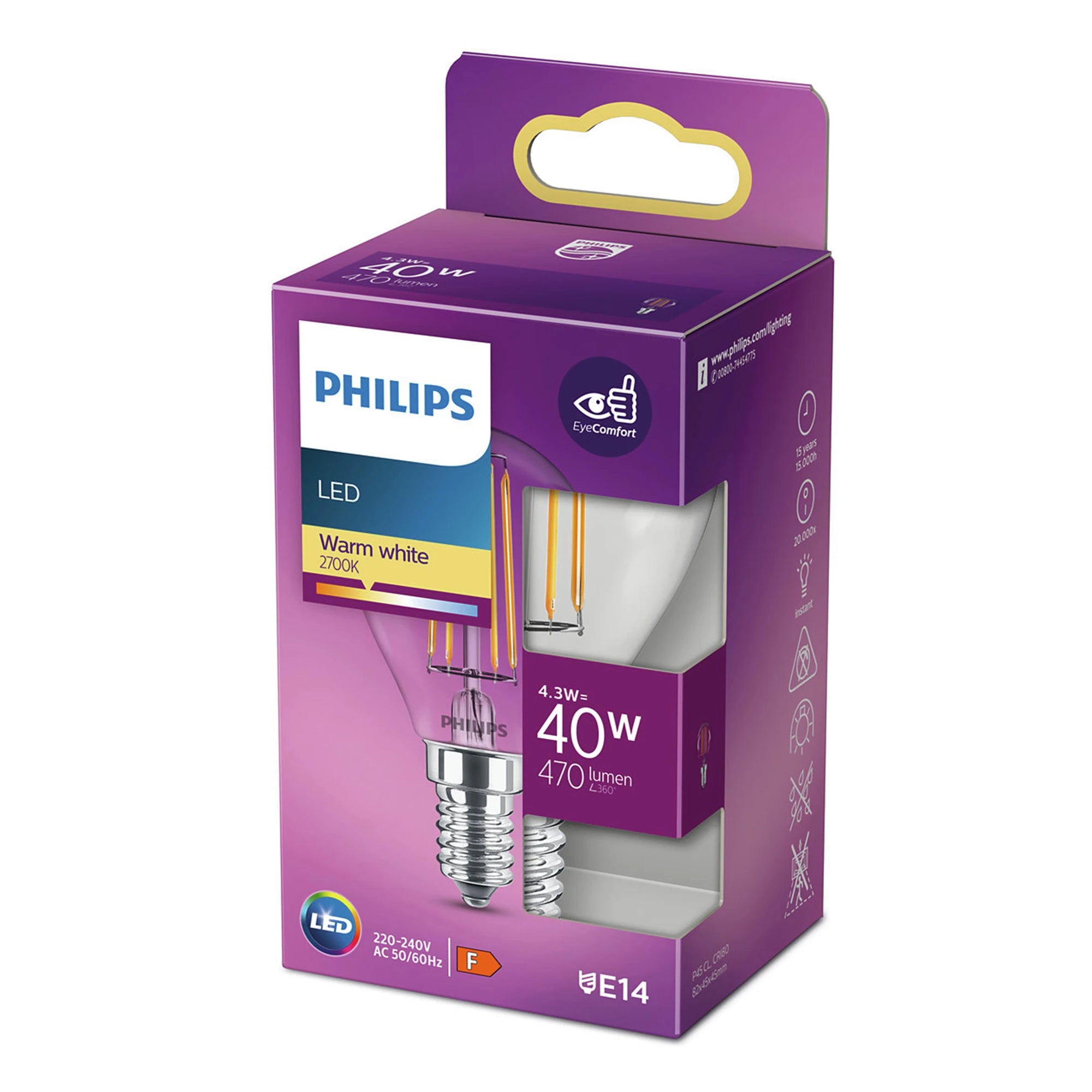 PHILIPS - Lamp - E14 - 40 W - 470 Lumen - 2700 K - Helder - Peer