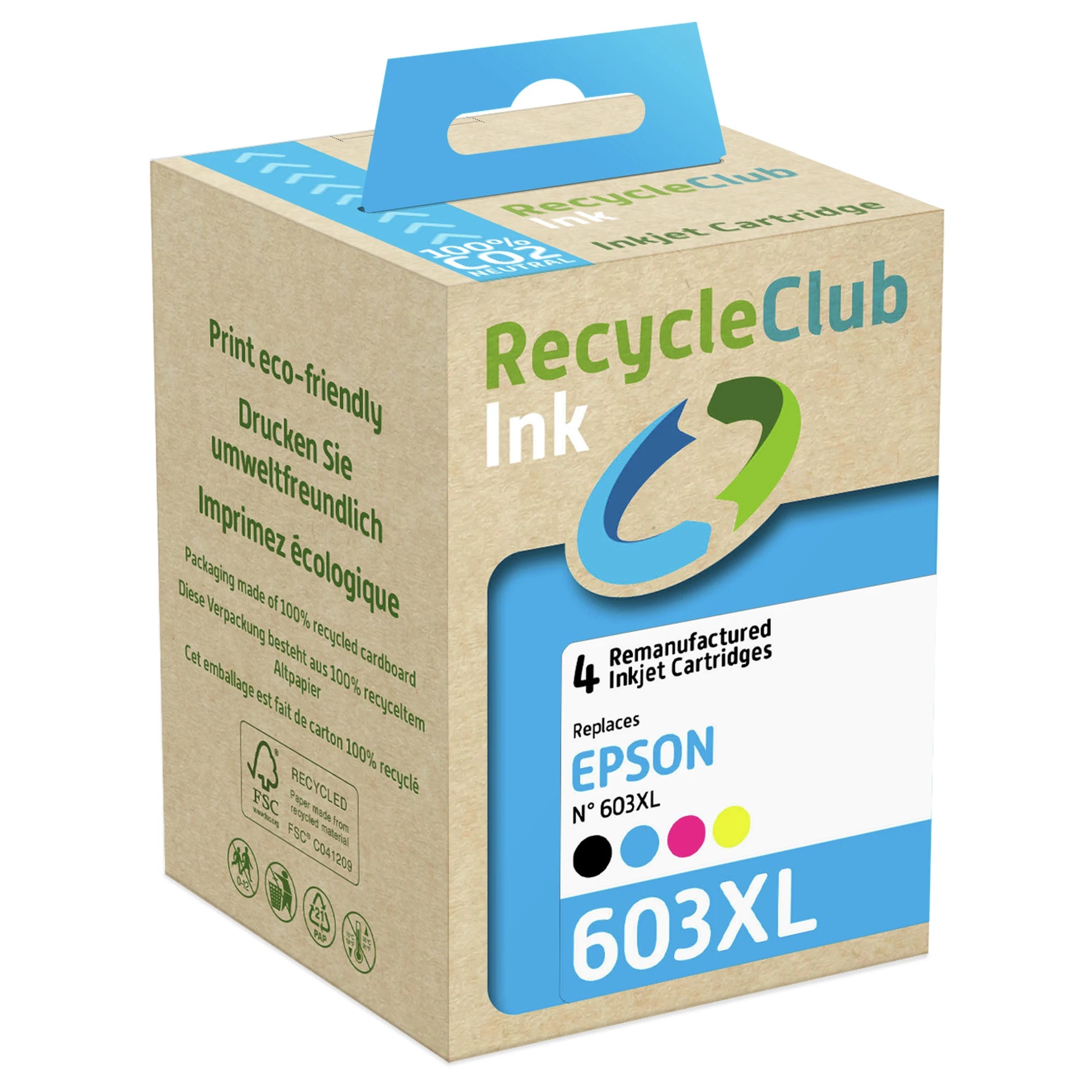 RECYCLECLUB XL cartridge 603XL - Multipack - Zwart + Blauw + Rood + Geel - Geschikt voor Epson
