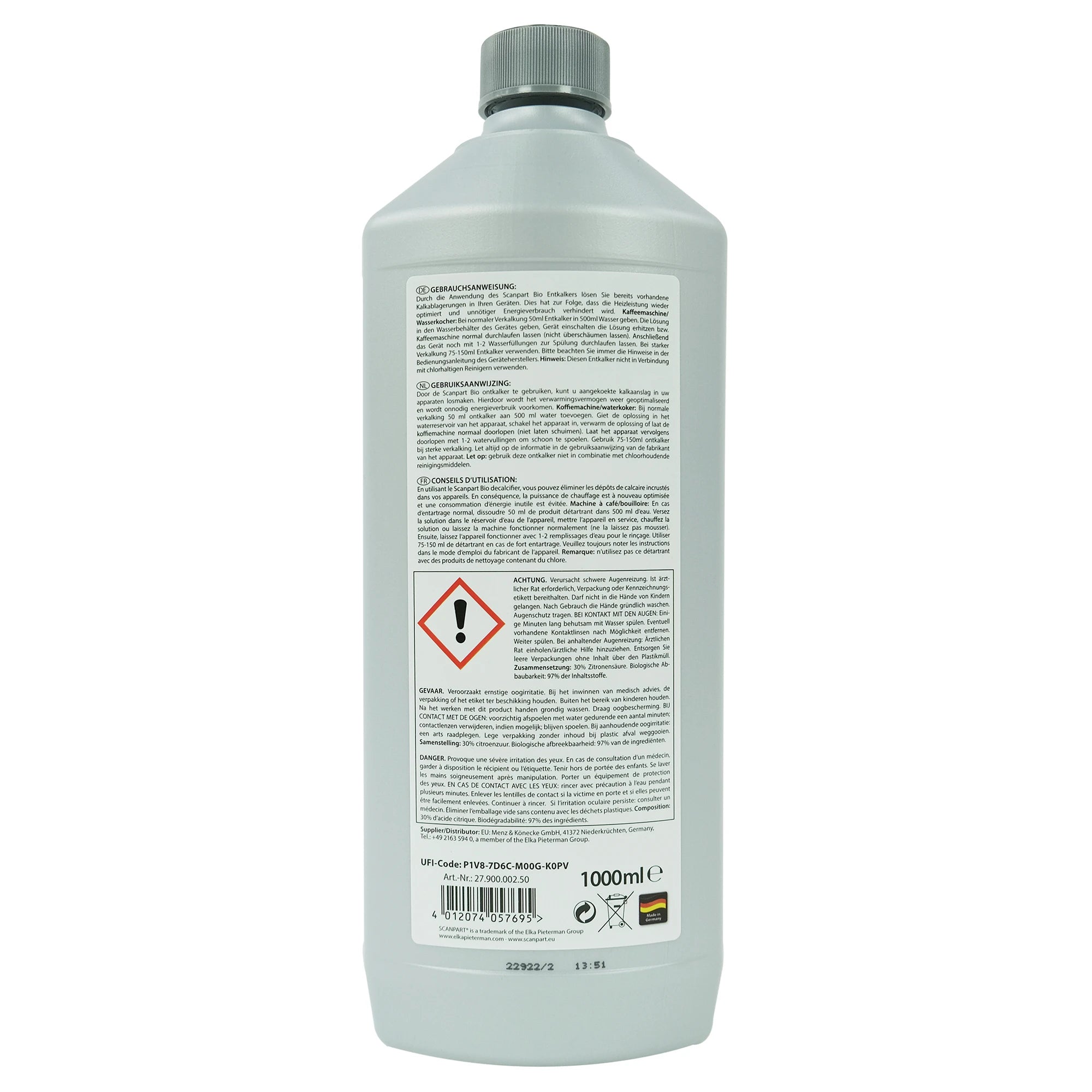 SCANPART - Bio Ontkalker - Vloeibaar 1 l - Toepasbaar voor Volautomaten| Espressomachines| Filtermachines| Waterkokers