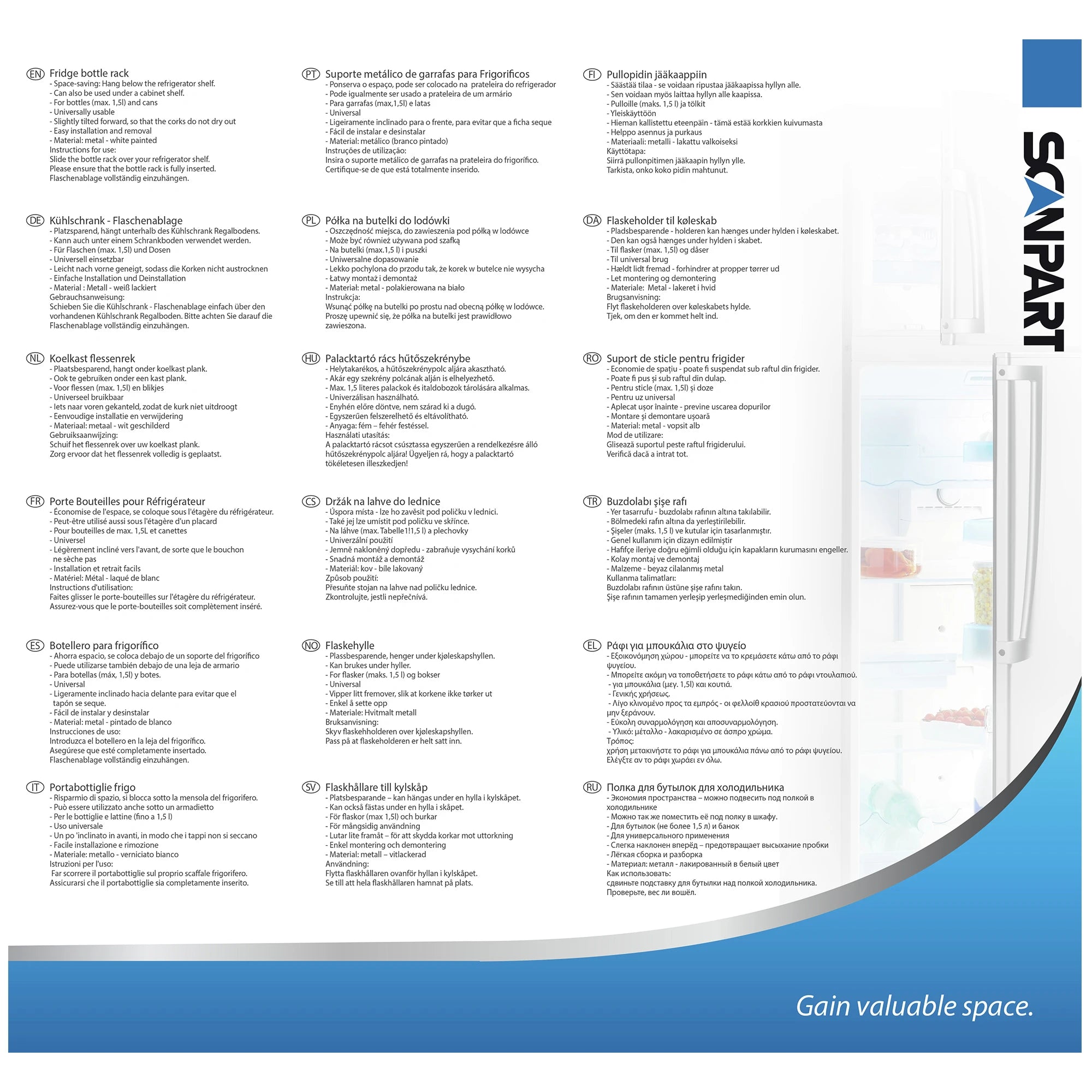 SCANPART - Koelkast flessenrek - Voor 3 flessen - RVS