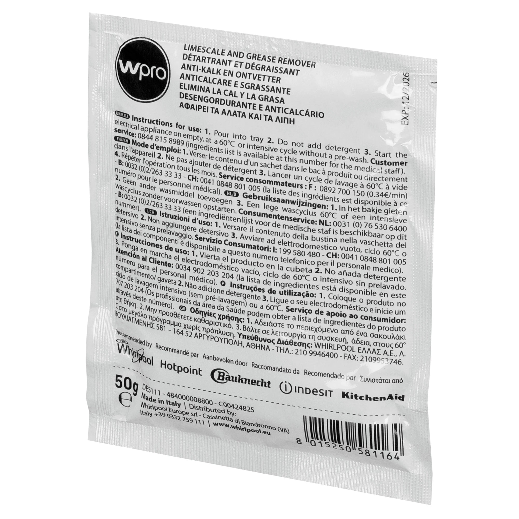 WPRO - Ontkalker DES616 - Poeder Multi Pack - 6 Stuks van 50 g