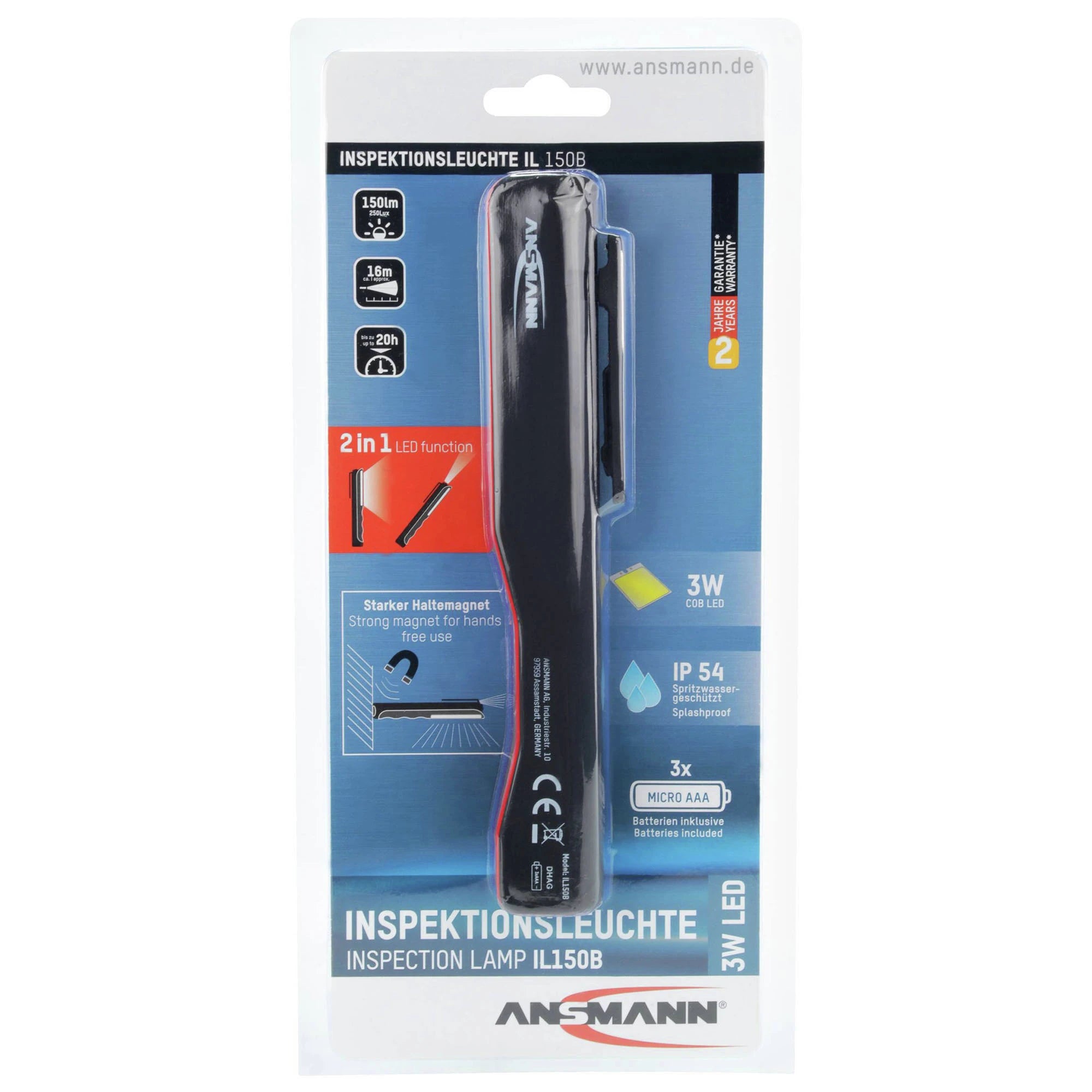 ANSMANN - Flashlight - IL150B - 150 lumens - Black + Red - 3x AAA batteries