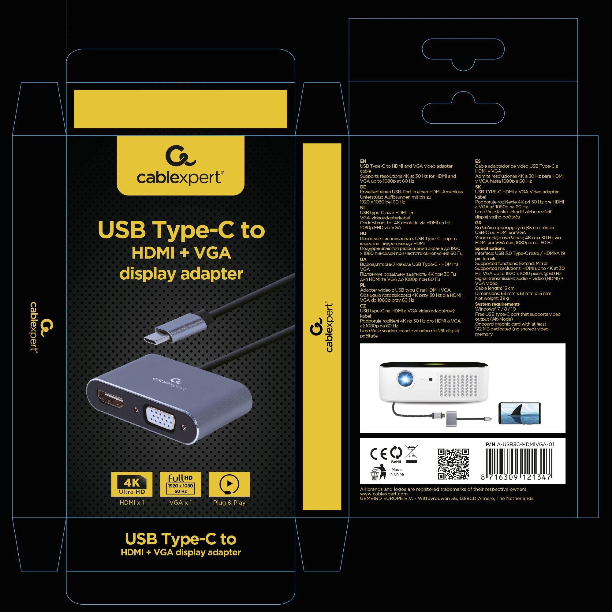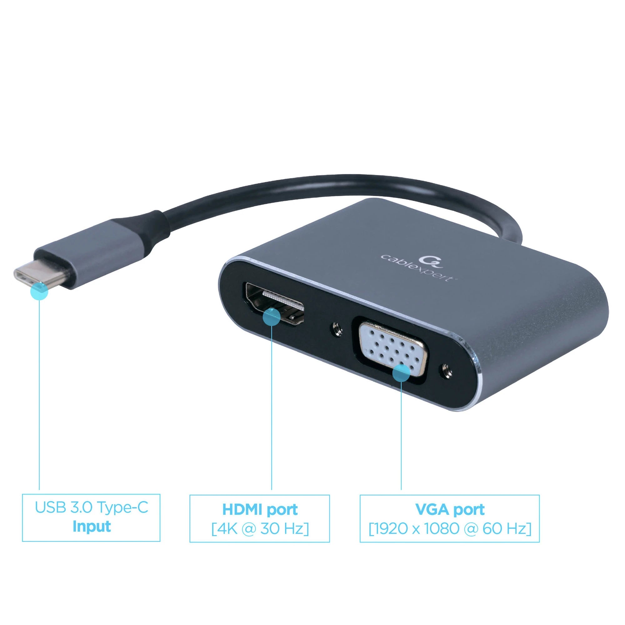 CABLEXPERT - Adapter cable - USB-C (Male) - HDMI (Female) + VGA (Female) - 0.15 m