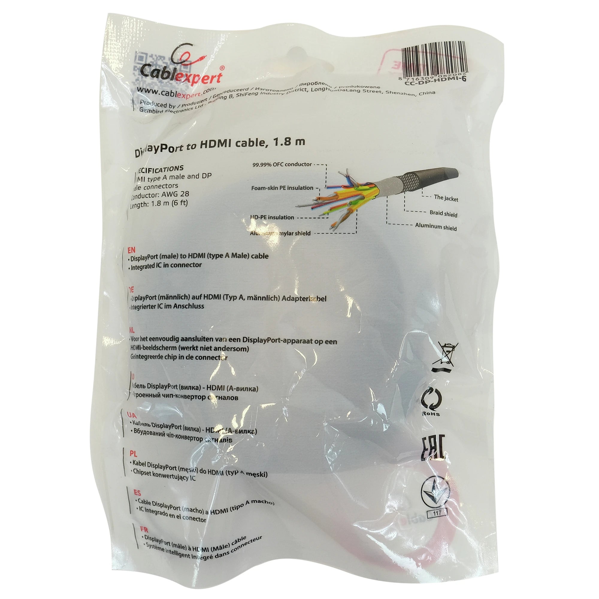 CABLEXPERT - HDMI cable - Adapter cable - DisplayPort (Male) - HDMI (Male) - 1.8 m