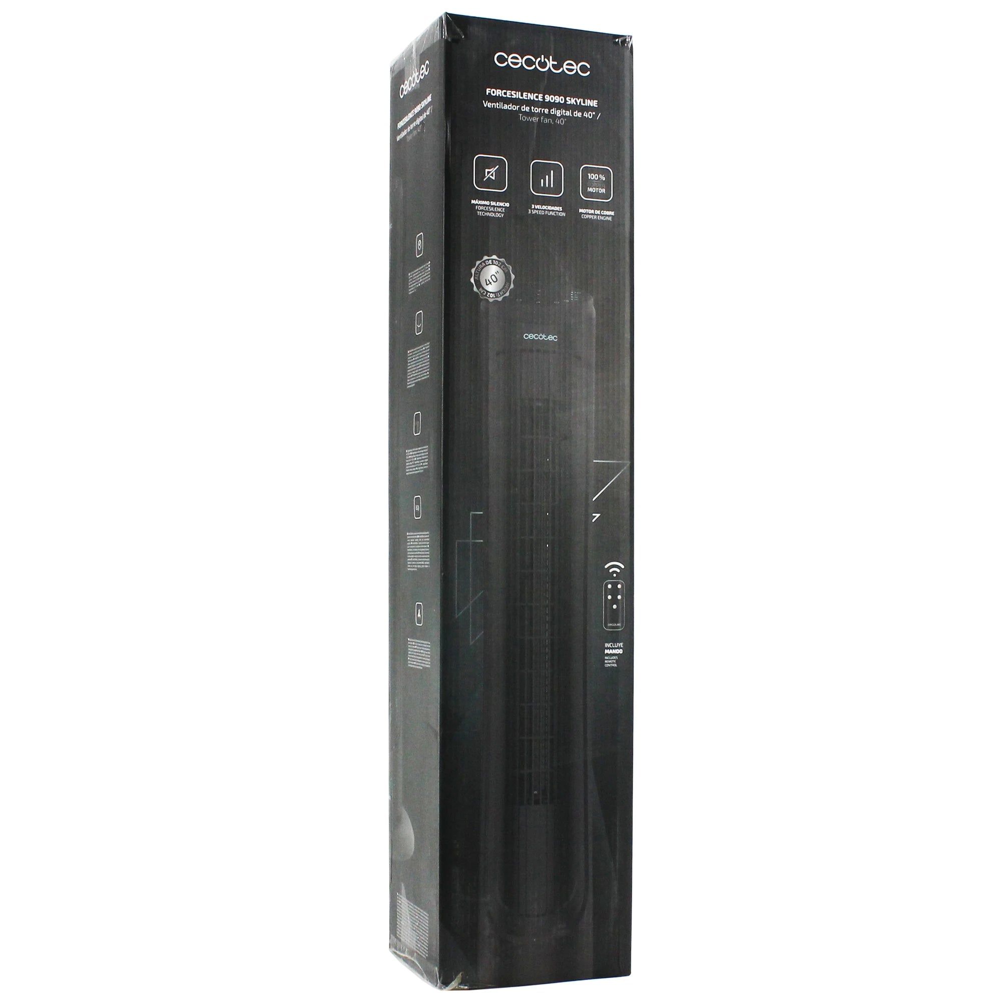 CECOTEC - Fan - Black - Column Model - 102 cm - Rotatable - 3 Speeds - With Timer & Remote Control
