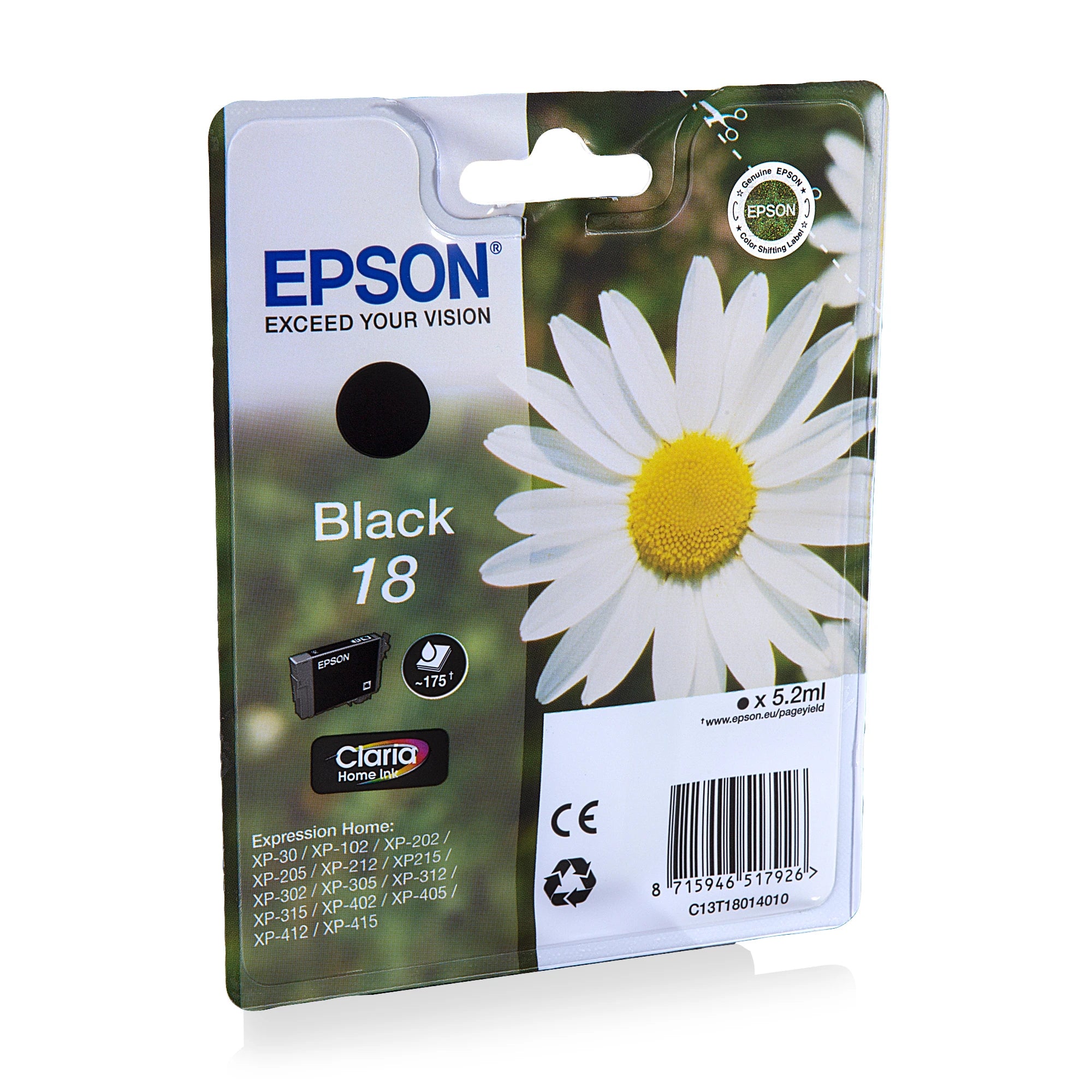 This Epson Cartridge 18 | T1801 Black can be used for a range of Epson printers. An Epson Cartridge provides you with an optimal and high print quality in both colour and black. With the content of 5.2 ml you can print up to 175 Pages.