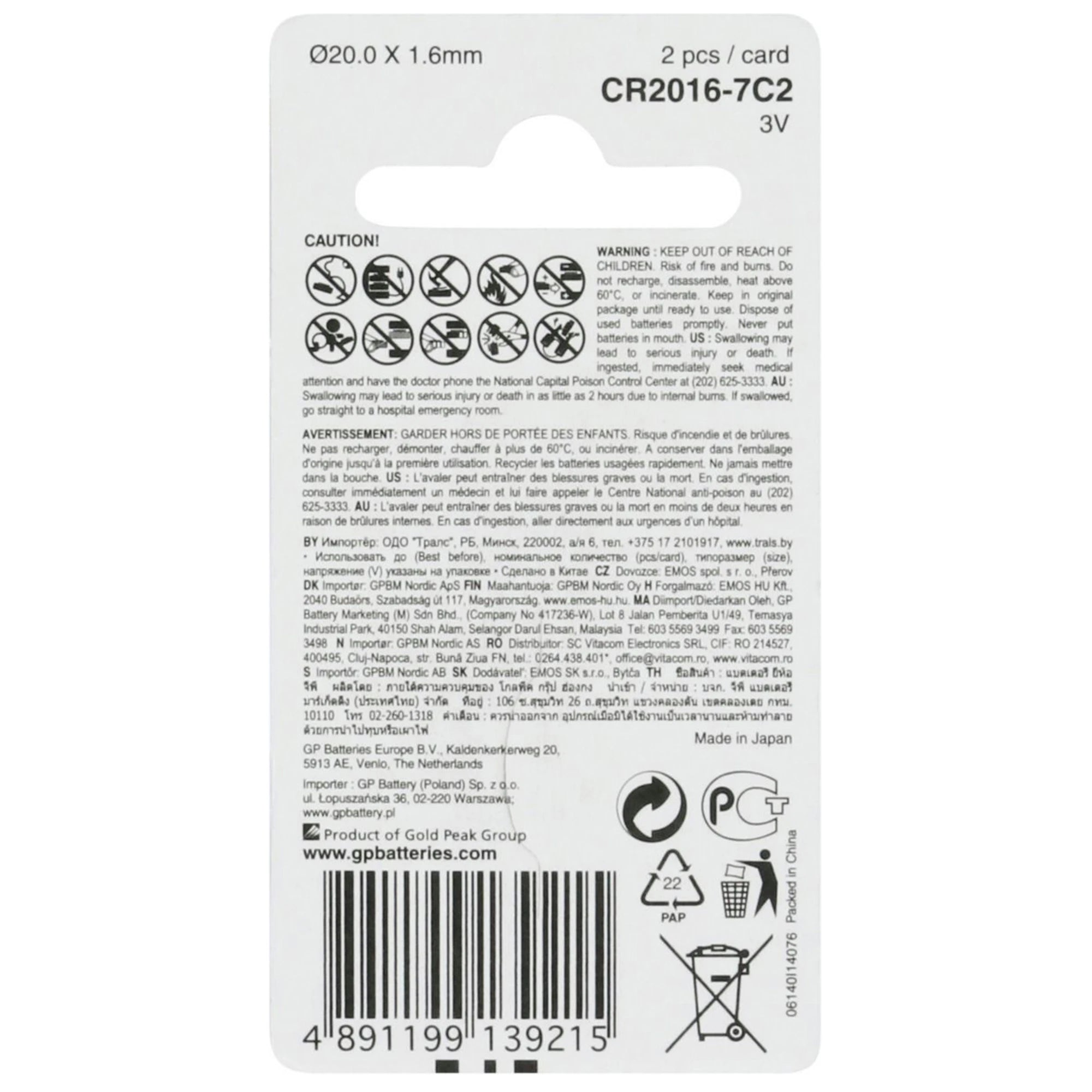 GP Lithium CR2016 - Duo Pack - Button cell