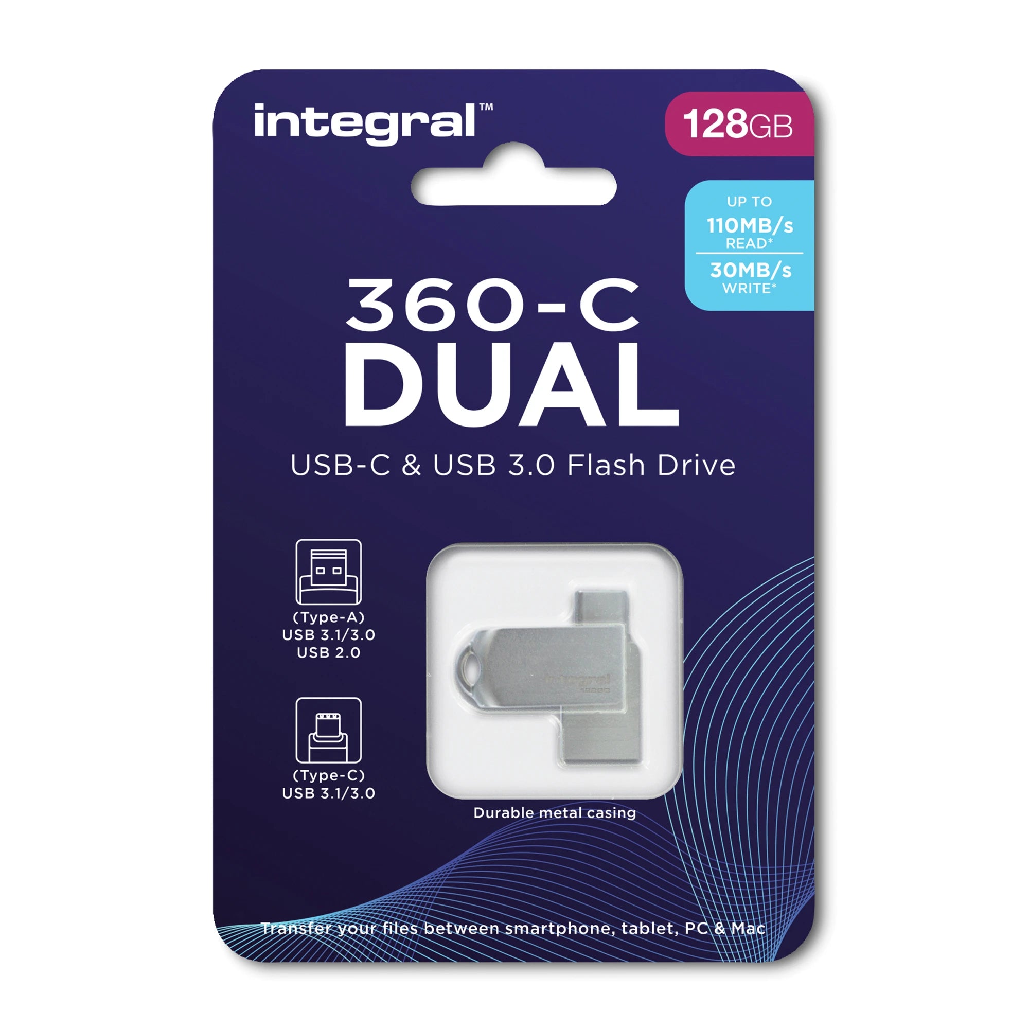 INTEGRAL - USB stick - 128 GB - Silver - USB-A 3.1/3.0 + USB-C 3.1/3.0