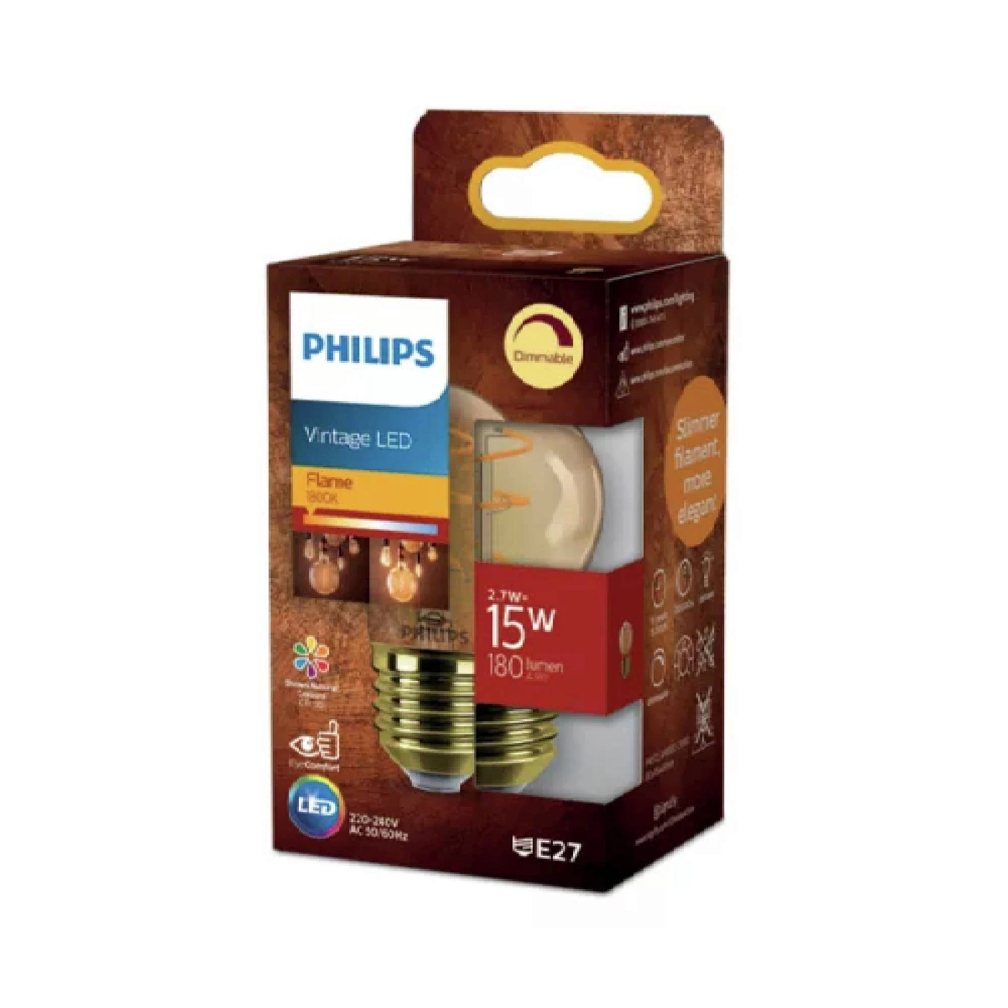 PHILIPS - Lamp - E27 - 15 W - 180 Lumens - 1800 K - Flame - Pear - Dimmable