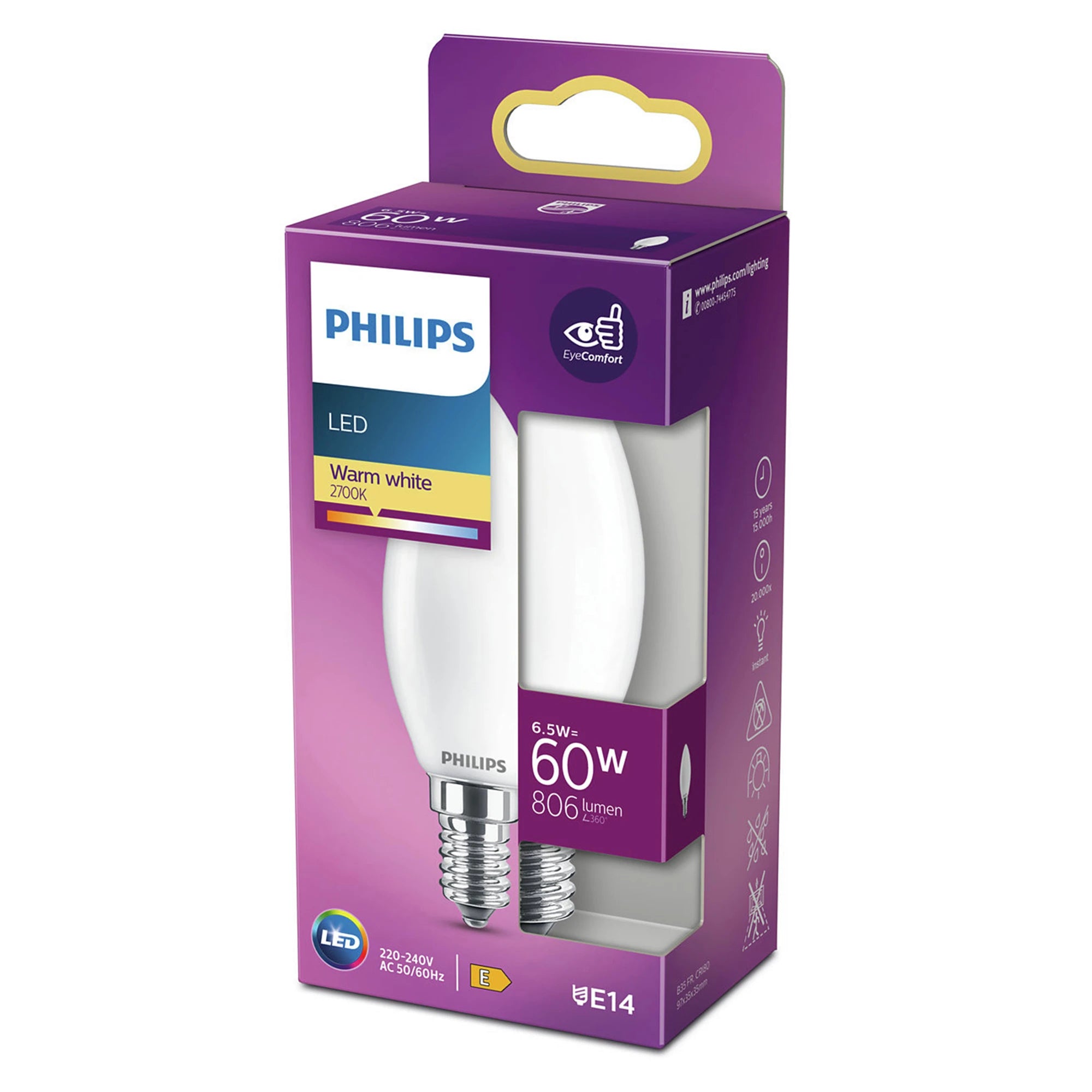 PHILIPS - Light Bulb - E14 - 60 W - 806 Lumen - 2700 K - Frosted - Candle