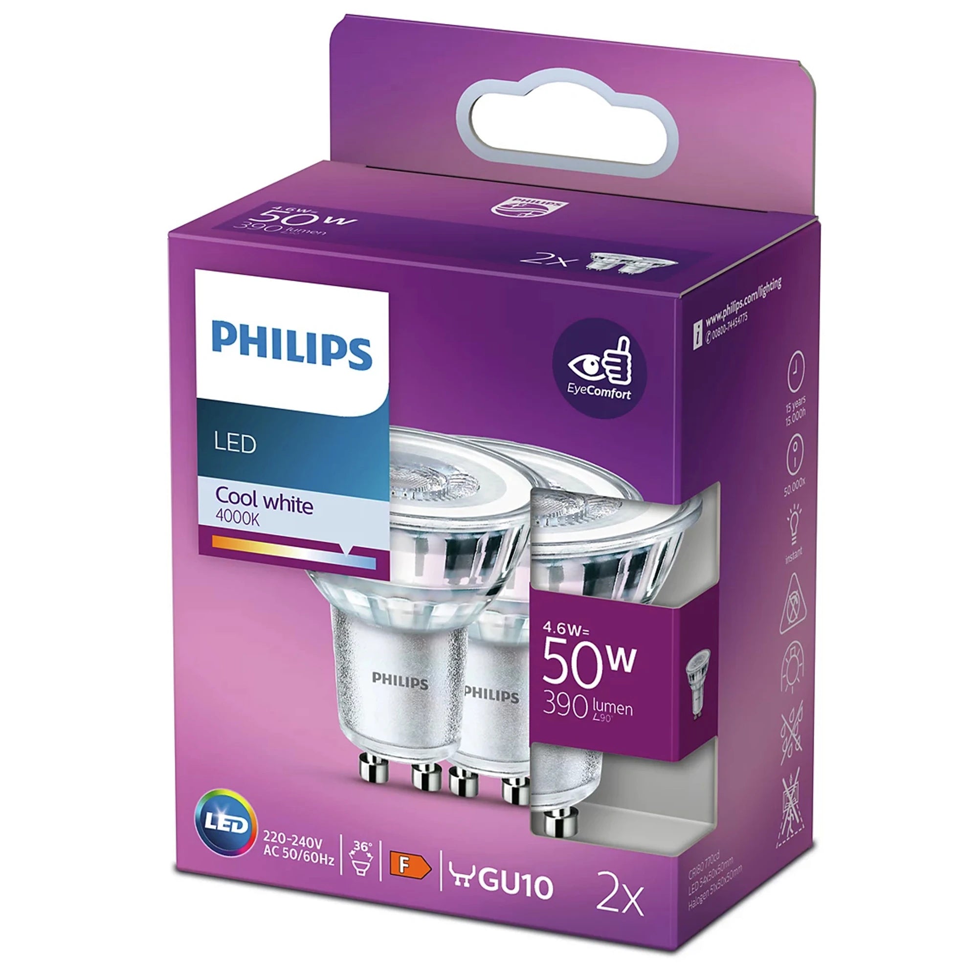PHILIPS - Reflector Spot - GU10 - 50 W - 390 Lumen - 4000 K - Bright - Reflector Spot - Duo Pack
