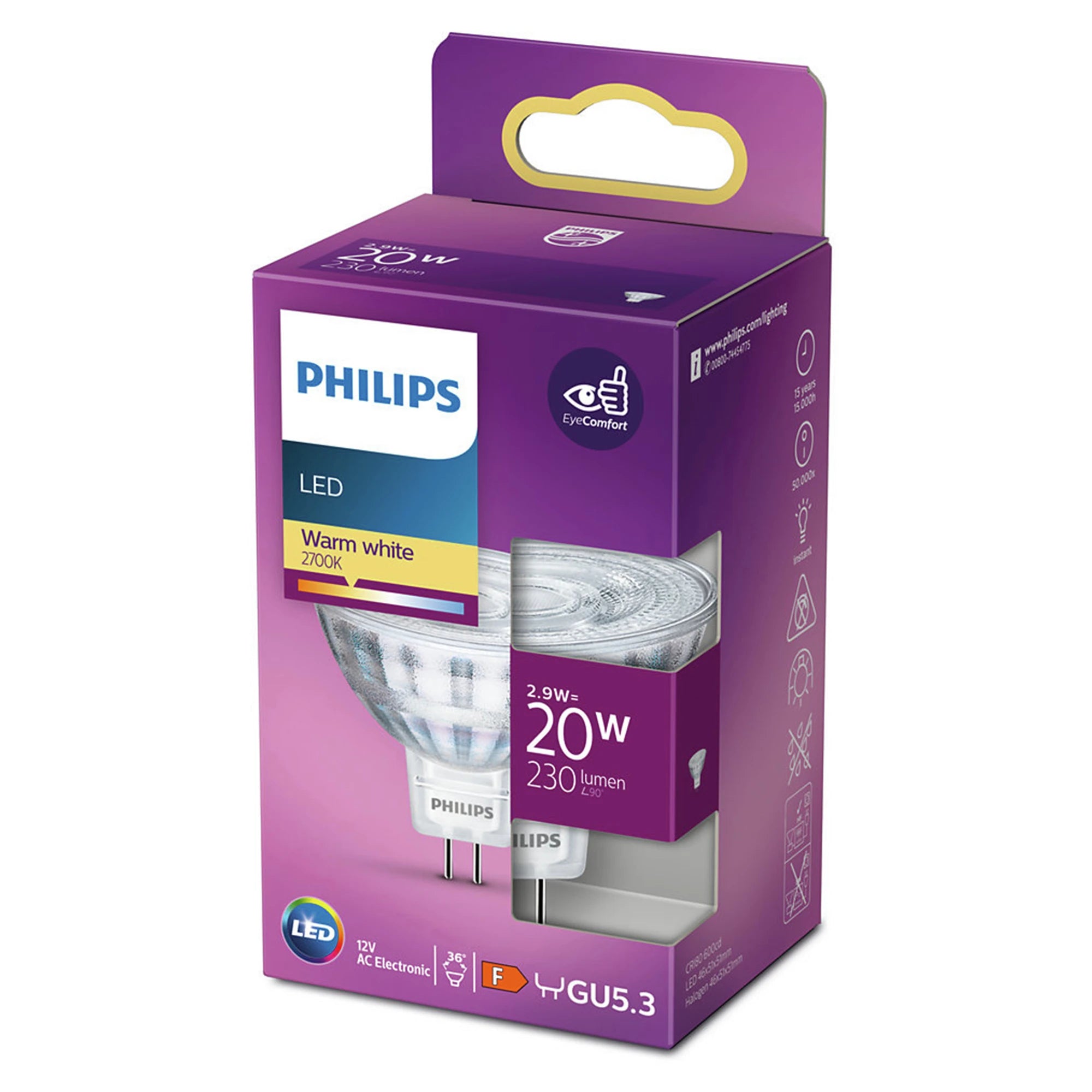 PHILIPS - Reflector Spot - GU5.3 - 20 W - 230 Lumen - 2700 K - Bright - MR16