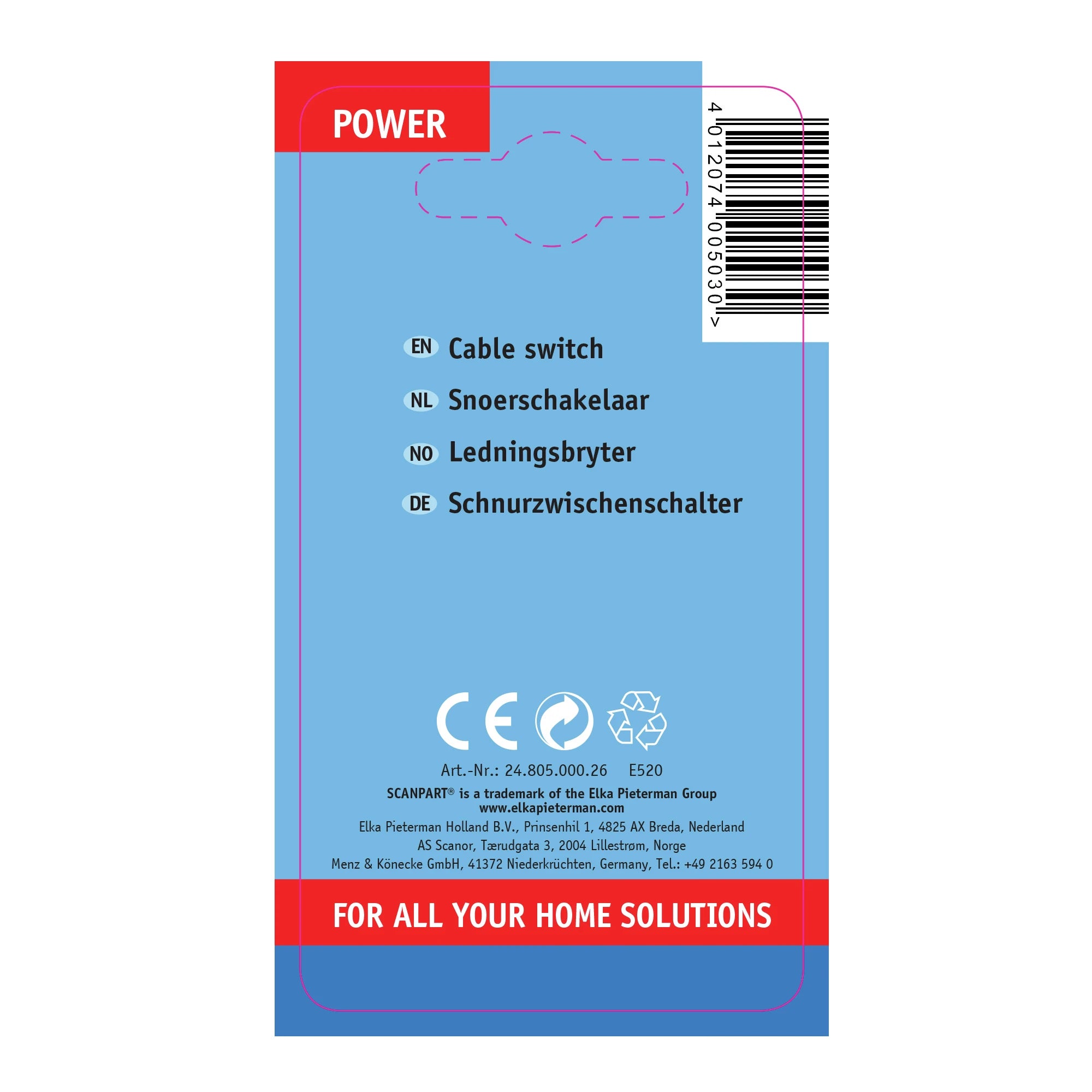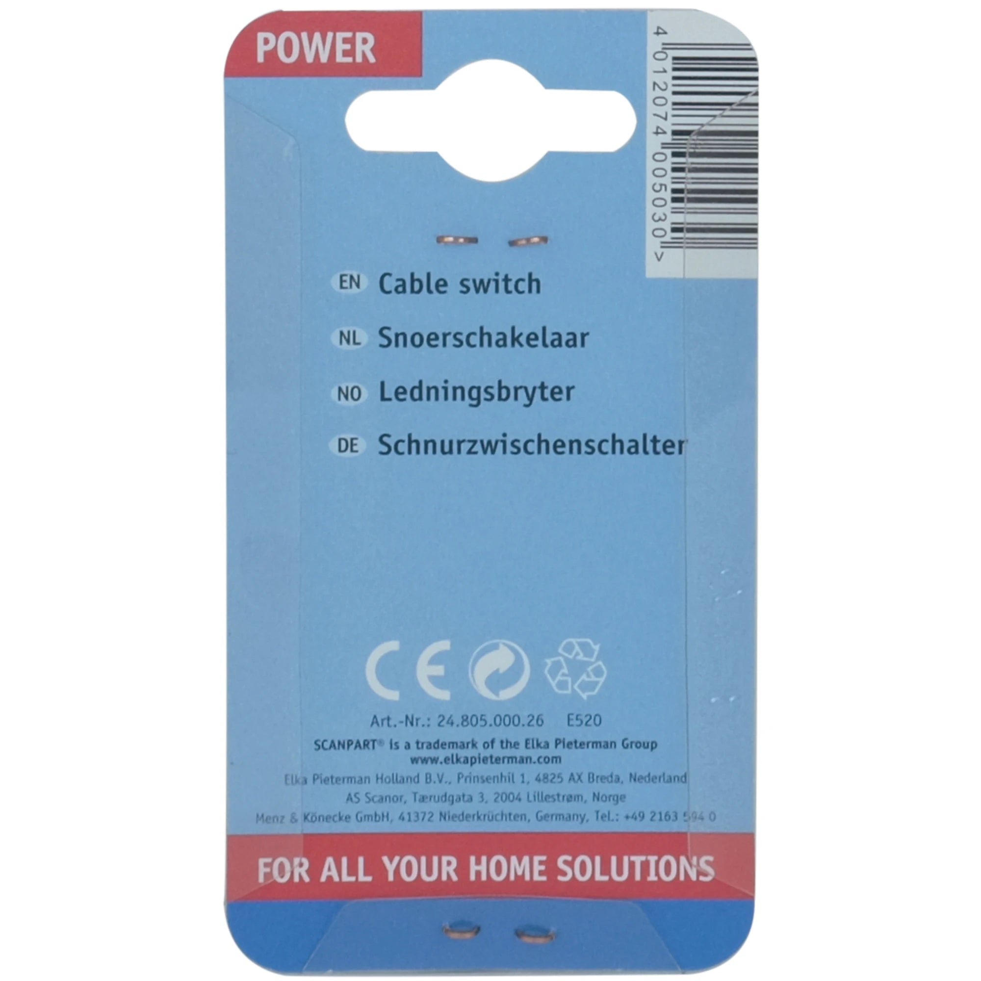 SCANPART - Cord switch - Cable 230 V - 2 pole - Cable 230 V - 2 pole Kema Keur