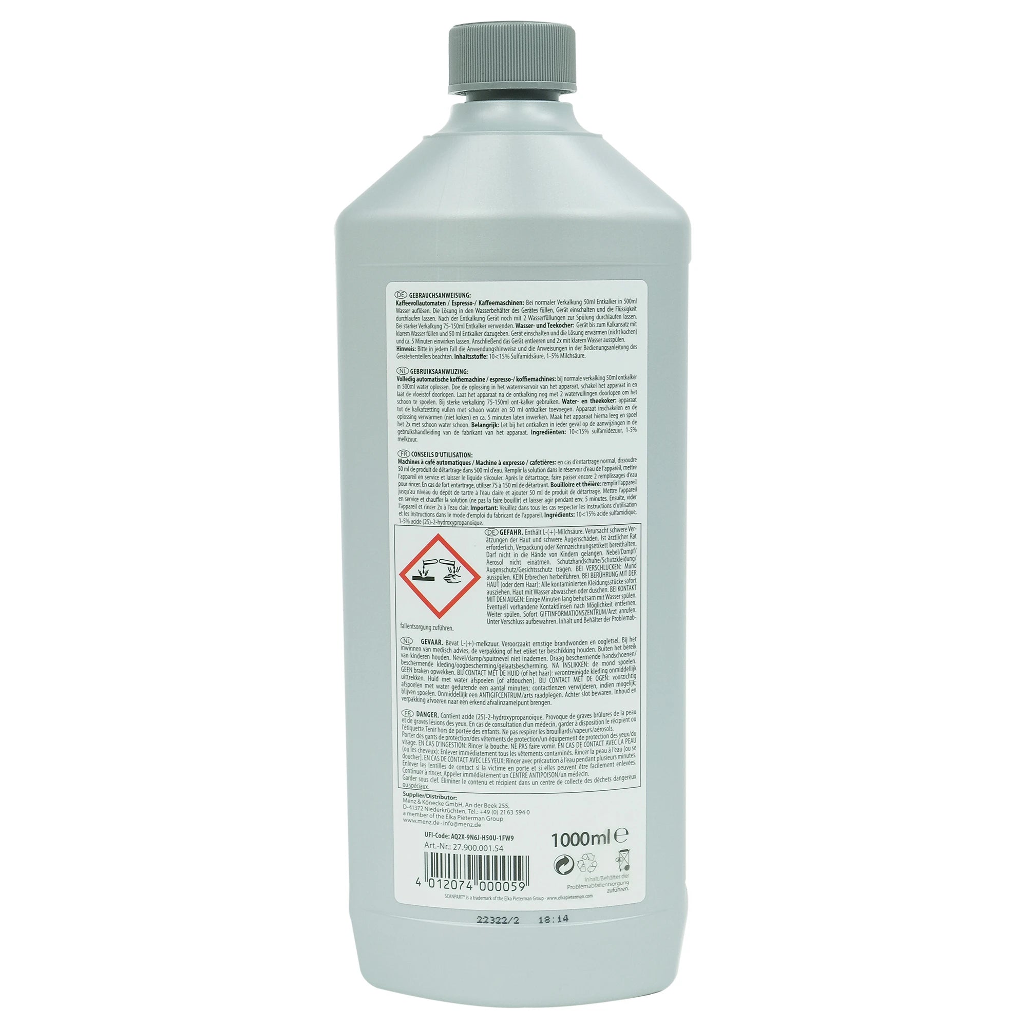 SCANPART - Descaler - Liquid 1 l - Applicable to Fully automatic coffee machines| Espresso machines| Filter coffee machines| Kettles
