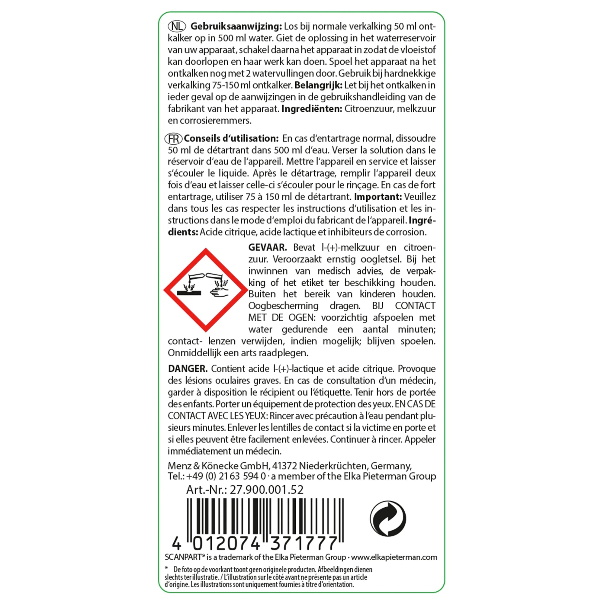 SCANPART - Descaler - Liquid 250 ml - Applicable to Espresso machines