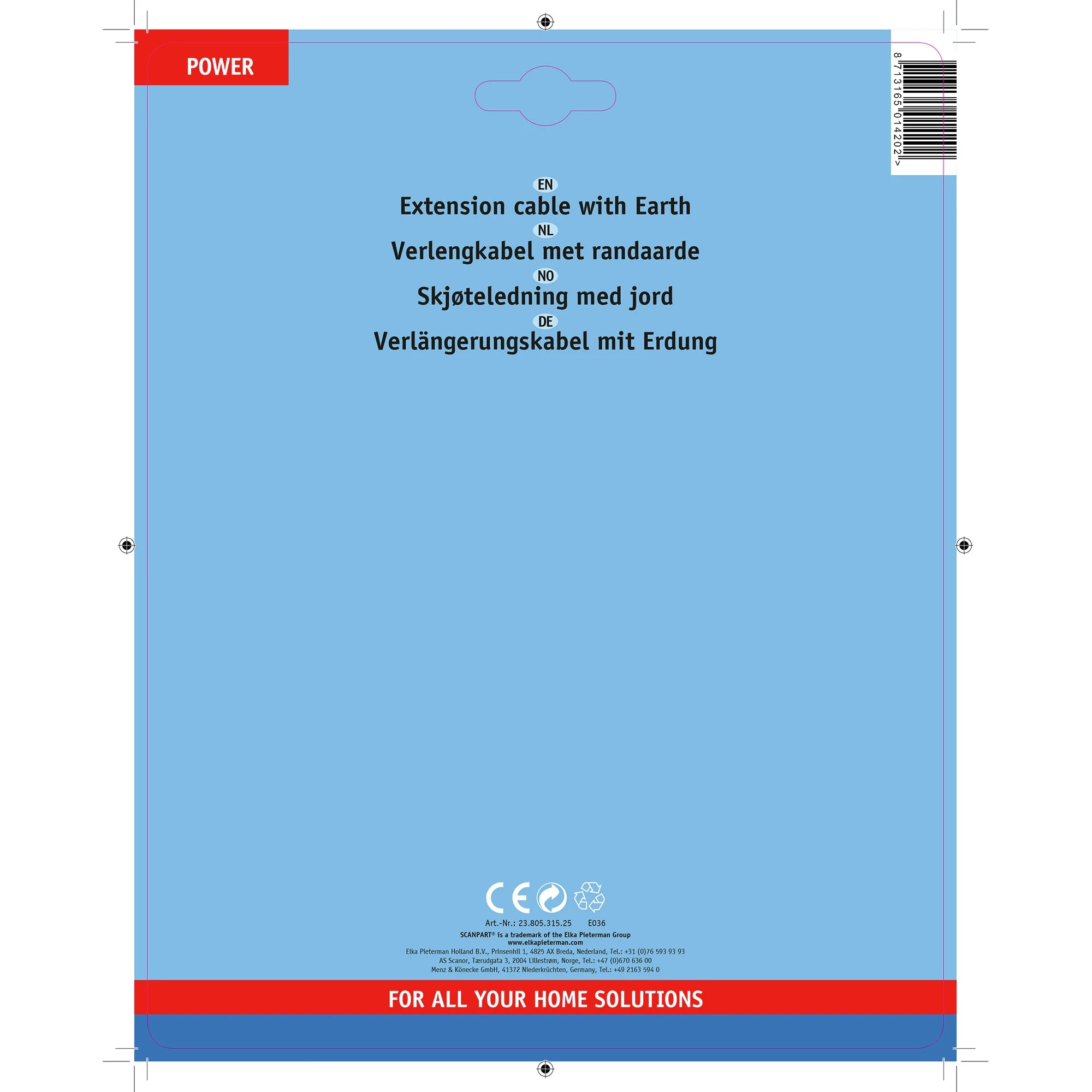 SCANPART - Extension cable - Contrast plug 230 V (Male) - angled - Plug 230 V (Female) 5.0 m 3 x 1.5 mm Grounded|Soft PVC|Angled plug