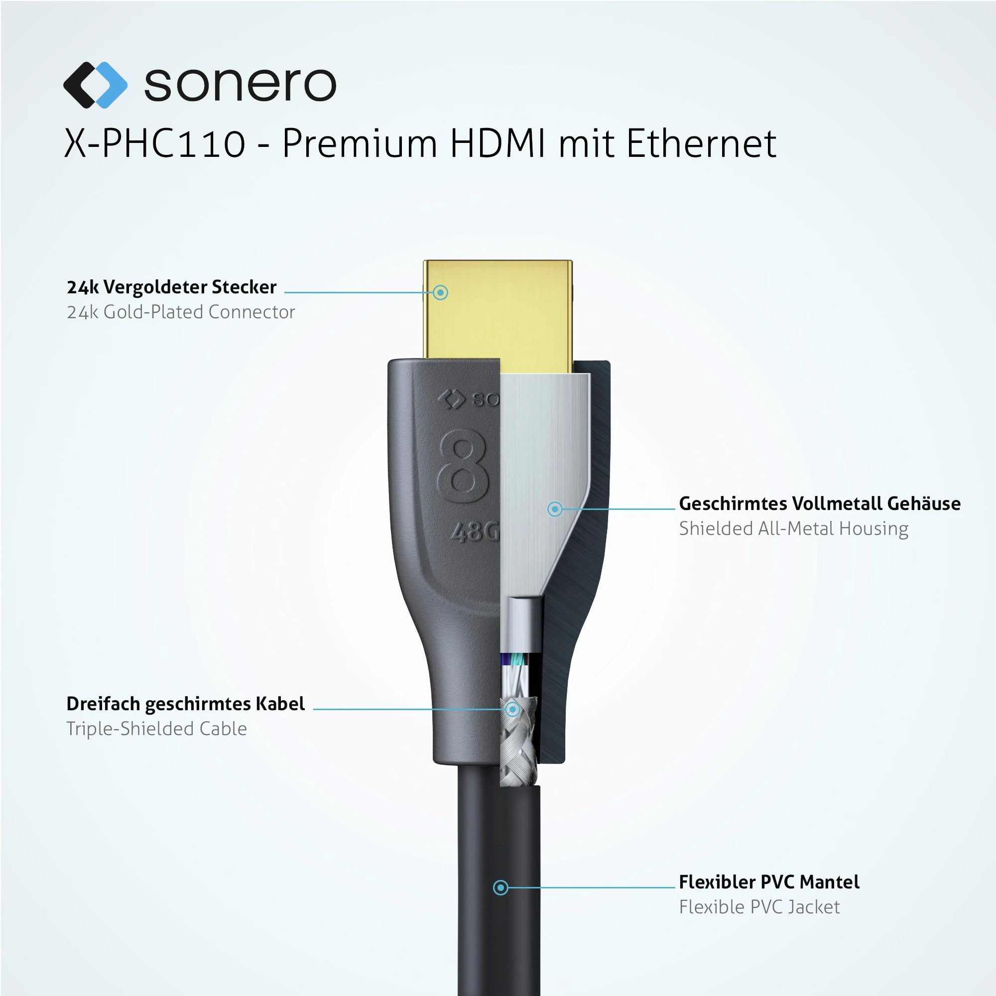 SONERO - HDMI cable - HDMI (Male) - HDMI (Male) - 2.0 m