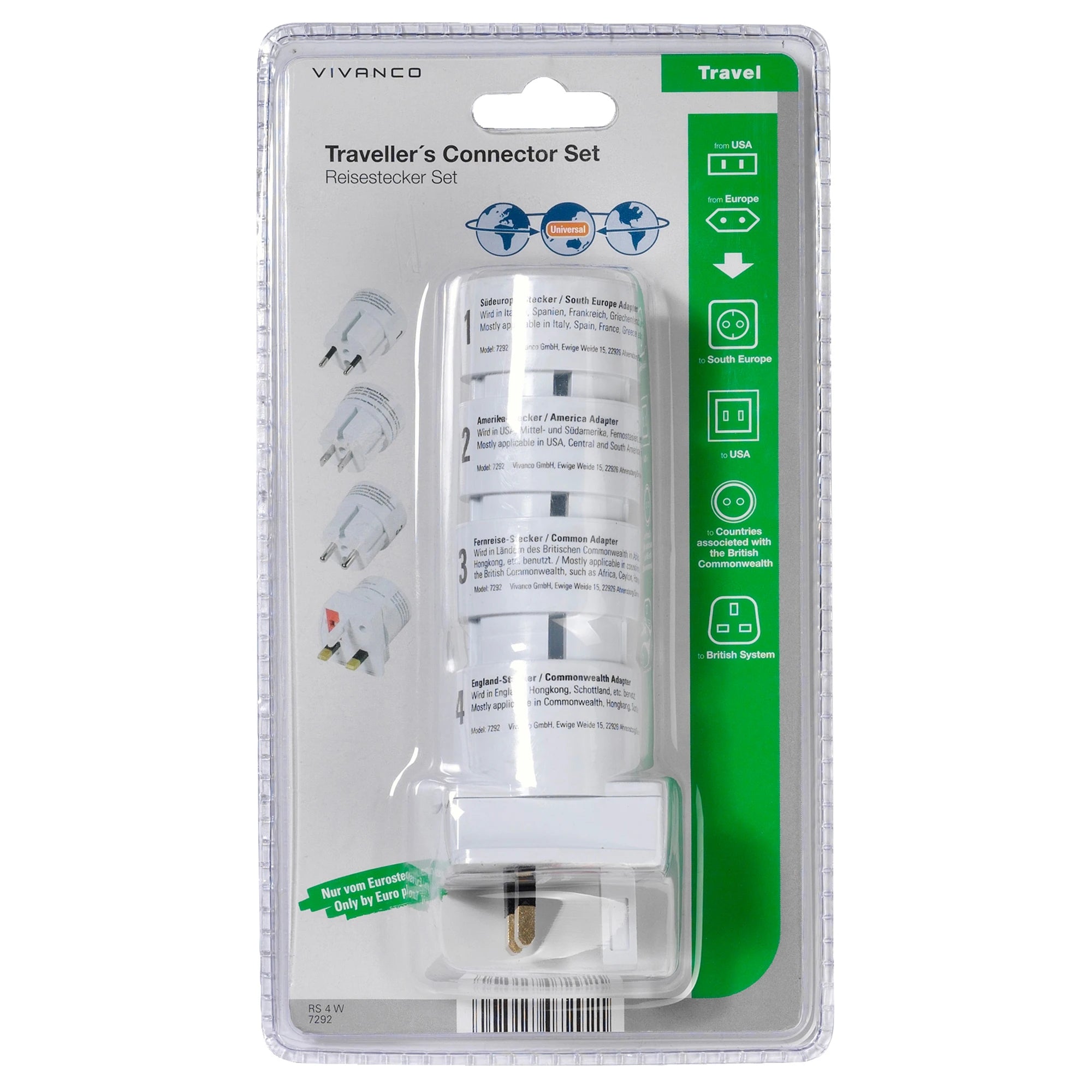 VIVANCO - Travel Plug set - EU plug | US plug to US plug | UK plug | Commonwealth plug